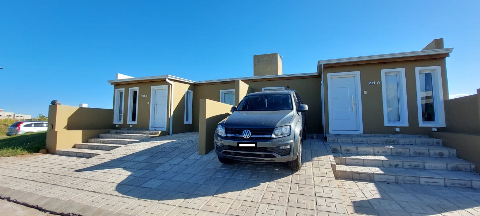 Los departamentos cuentan cada uno con dos dormitorios, cocina, living/comedor, baño, patio y entrada vehicular, la superficie cubierta de la propiedad es de 169m2, mientras que los metros de terreno son 360m2. El lugar cuenta con servicio de luz, agua, internet y proximamente gas natural! El titulo es perfecto